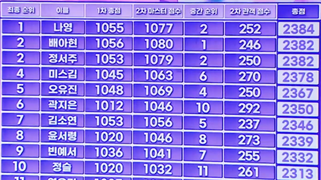 1위 말고도 다른 여왕들의 점수도 궁금하시죠?
