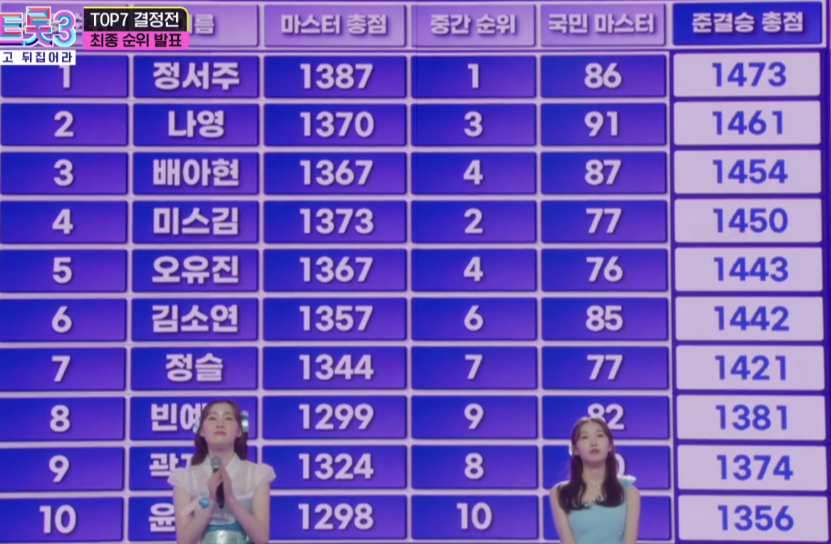8위 빈예서, 9위 곽지은, 10위 윤서령