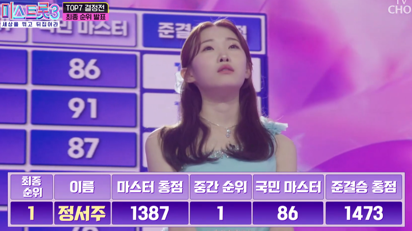 트리플 진 1위에 오른 정서주 씨에게 진심으로 축하의 말씀을 전합니다. 여러분의 노래와 무대가 찬란한 성과로 이어져 정말 기쁜 소식입니다.