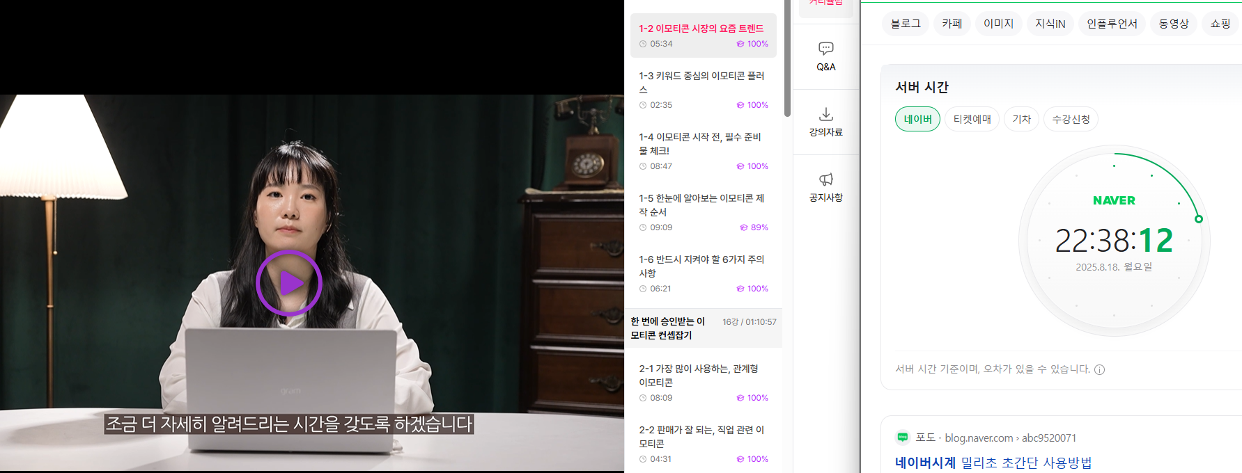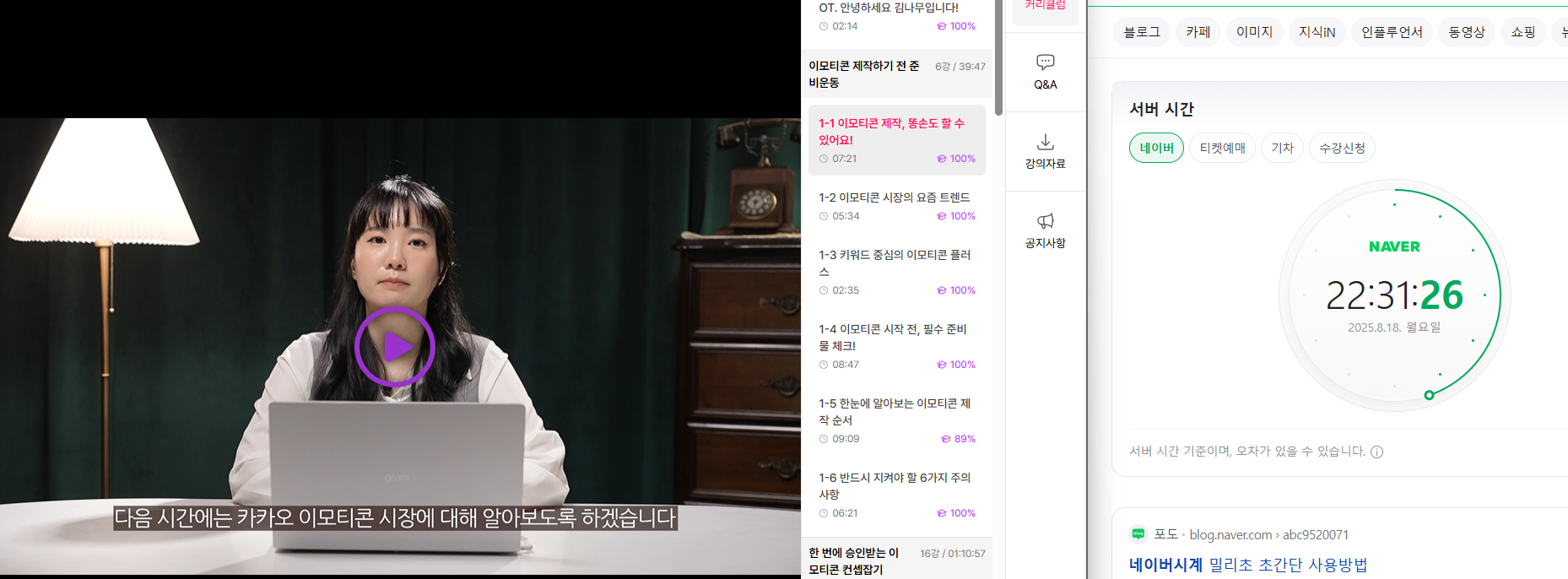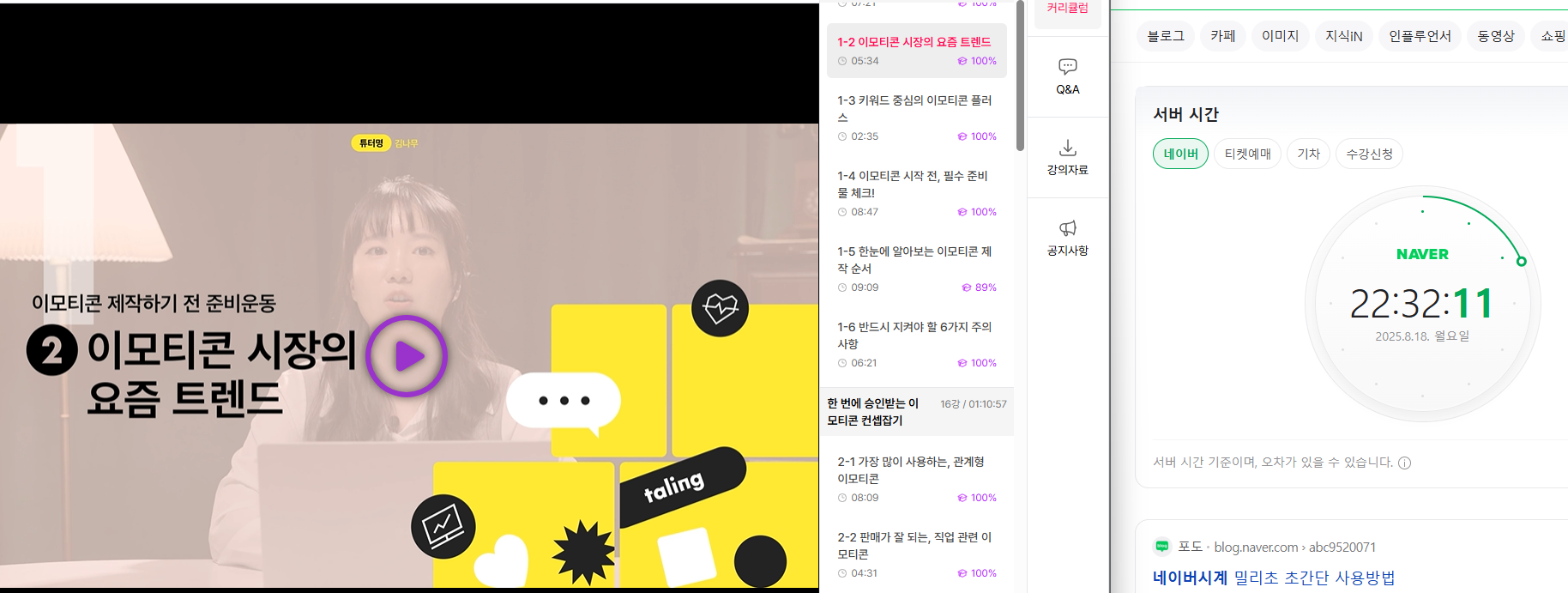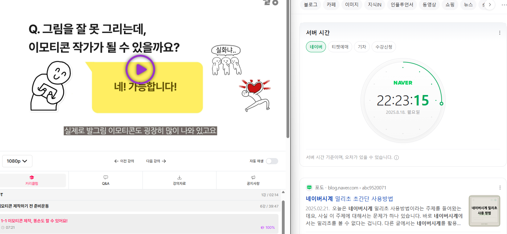 사실 이모티콘을 내가 직접 만들어보는 건 오래전부터 꿈꿔왔던 일이었는데, 늘 할까 말까만 하다가 이번에 드디어 용기를 내서 신청했다. 게다가 환급반이라는 특별한 과정까지 알게 돼서 ‘이번에는 진짜 끝까지 해보자!’ 하는 마음이 생겼다. 강의는 작가님이 차분한 목소리로 이모티콘 시장의 전반적인 분위기부터 알려주셔서 처음 시작하는 사람도 이해하기 쉽게 다가올 수 있었다. 단순히 이모티콘을 예쁘게 만드는 걸 넘어서, 시장이 어떻게 흘러가는지, 사람들이 어떤 포인트에 반응하는지 등 실질적으로 도움이 되는 이야기를 해주셨다. 또 초보자라면 당연히 가질 만한 궁금증들을 Q&A 형식으로 풀어주셔서 훨씬 편하게 들을 수 있었다. 나 역시 막연히 궁금했던 부분들이 깔끔하게 해결돼 속이 시원했다. 이제 남은 건 내 손으로 직접 그려보고 만들어보는 일뿐이다. 이번엔 꼭 나만의 개성 있는 결과물을 완성해보고 싶다.